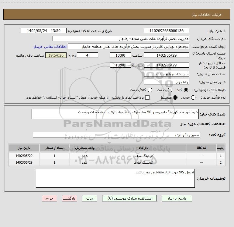| 2 | -- | کوپلینگ فلزی | عدد | 1 | 1402/05/29 |