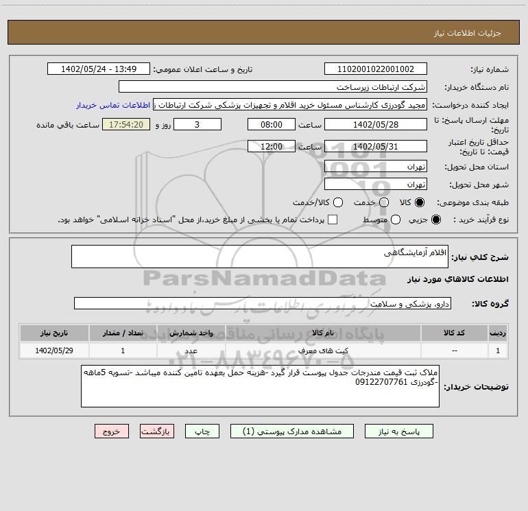 شرح کلی نیاز: اقلام آزمایشگاهی