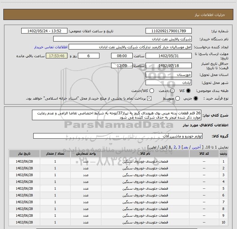 نام دستگاه خریدار:شرکت پالایش نفت ابادان