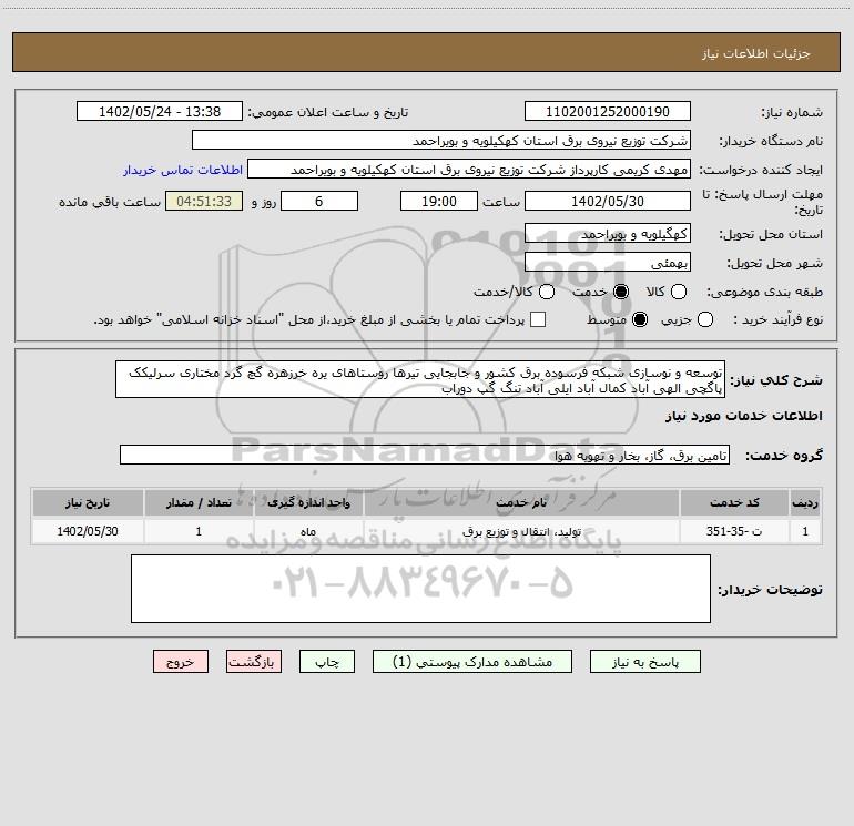 نام دستگاه خریدار:شرکت توزیع نیروی برق استان کهکیلویه و بویراحمد