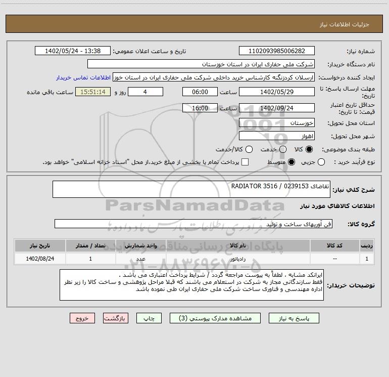 شرح کلی نیاز: تقاضای 0239153 / RADIATOR 3516