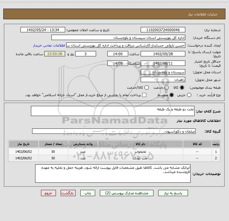 شرح کلی نیاز: تخت دو طبقه و یک طبقه