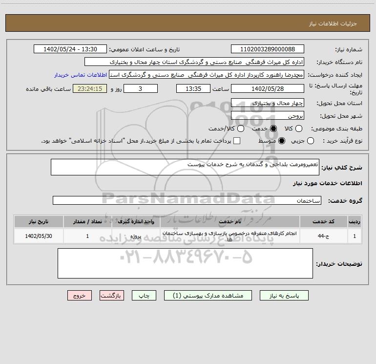 نام دستگاه خریدار:اداره کل میراث فرهنگی صنایع دستی و گردشگری استان چهار محال و بختیاری