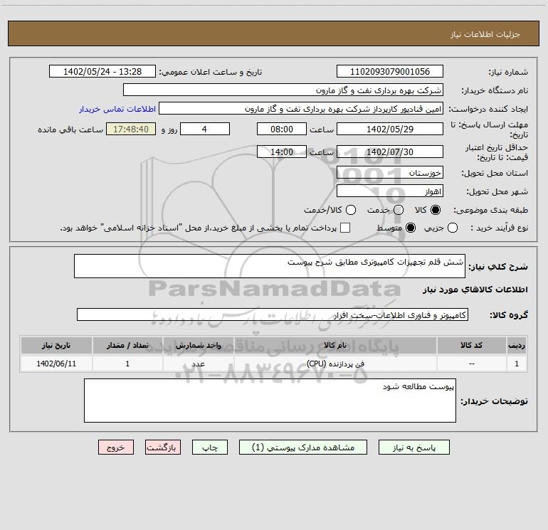نام دستگاه خریدار:شرکت بهره برداری نفت و گاز مارون