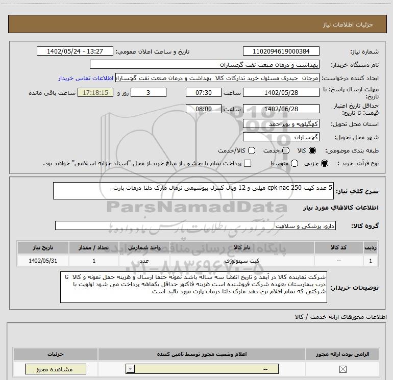 نام دستگاه خریدار:بهداشت و درمان صنعت نفت گچساران