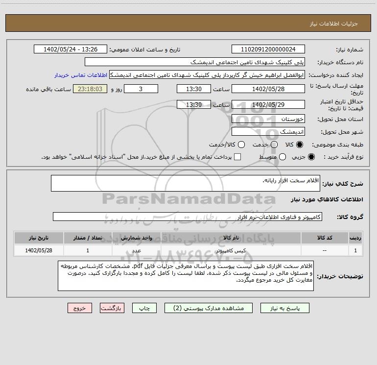 نام دستگاه خریدار:پلی کلینیک شهدای تامین اجتماعی اندیمشک