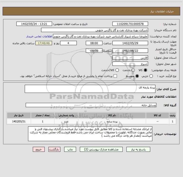 نام دستگاه خریدار:شرکت بهره برداری نفت و گاز زاگرس جنوبی