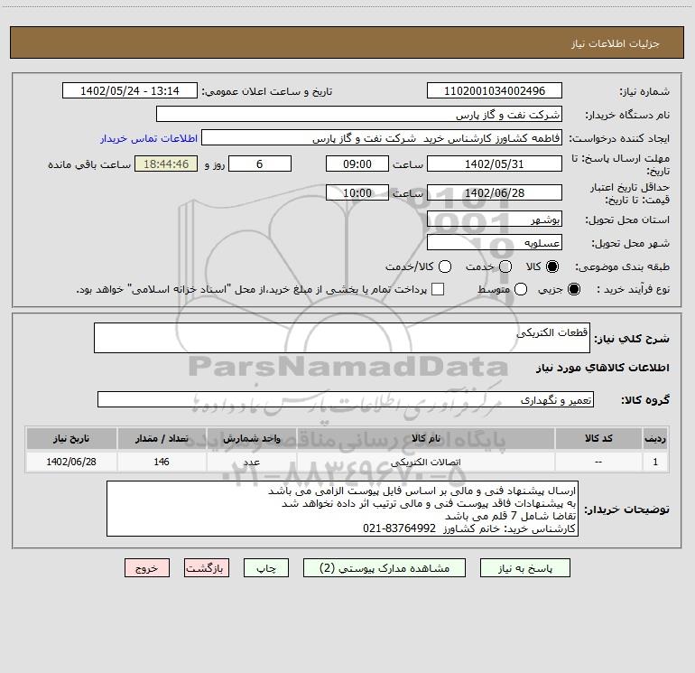 شرح کلی نیاز: قطعات الکتریکی