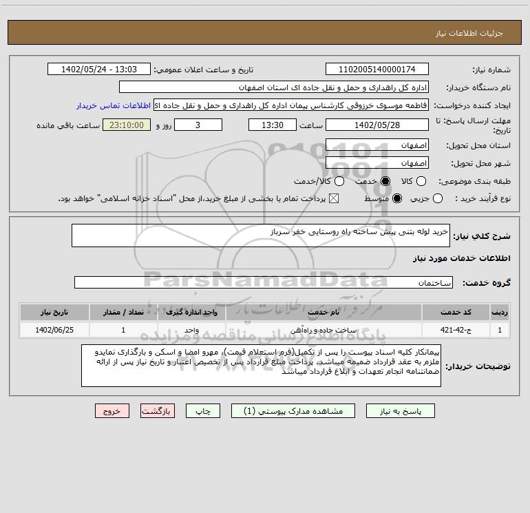 شرح کلی نیاز: خرید لوله بتنی پیش ساخته راه روستایی خفر سرباز