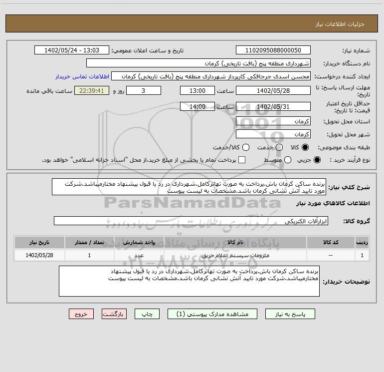 نام دستگاه خریدار:شهرداری منطقه پنج (بافت تاریخی) کرمان