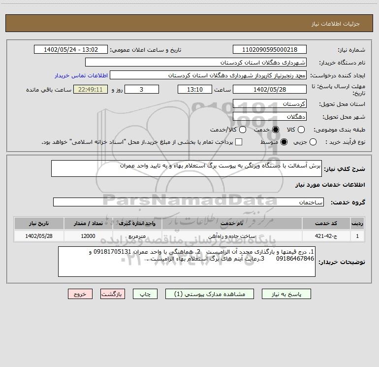 استعلام برش آسفالت با دستگاه ویرتگن به پیوست برگ استعلام بهاء و به تایید واحد عمران, استعلام برش آسفالت با دستگاه ویرتگن به پیوست برگ استعلام بهاء و به تایید واحد عمران