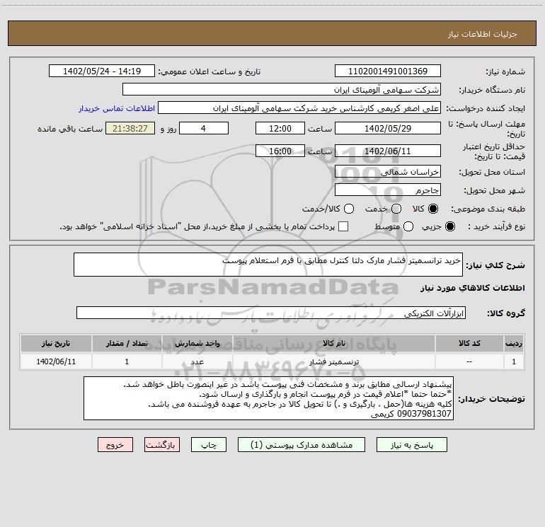 نام دستگاه خریدار:شرکت سهامی آلومینای ایران