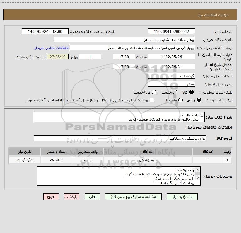 پیش فاکتور با درج برند و کد IRC ضمیمه گردد