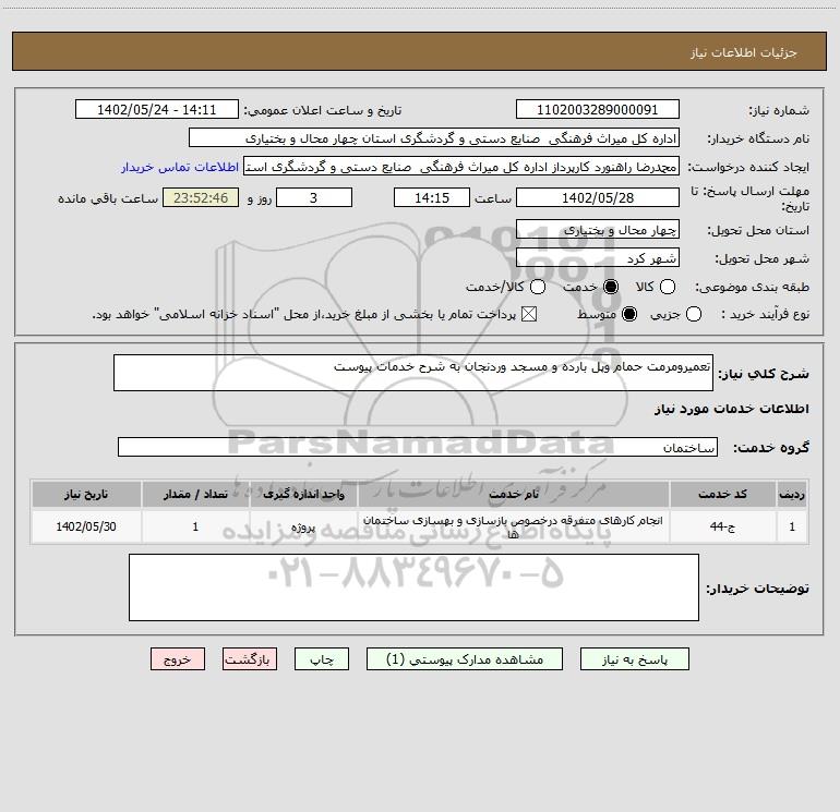 نام دستگاه خریدار:اداره کل میراث فرهنگی صنایع دستی و گردشگری استان چهار محال و بختیاری