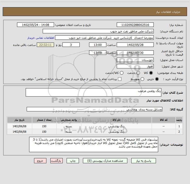 شرح کلی نیاز: رنگ روغنی مرغوب