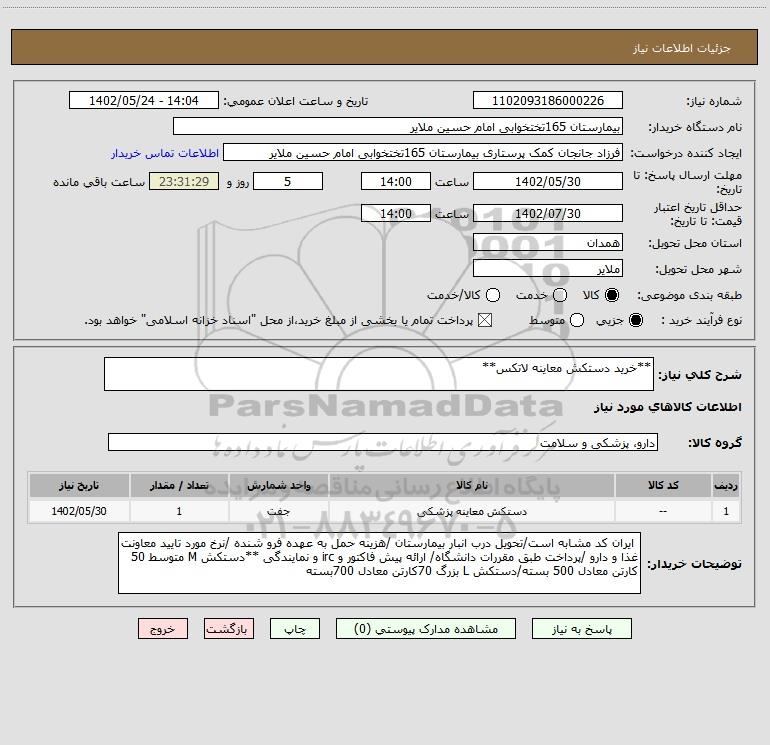 استعلام **خرید دستکش معاینه لاتکس**, استعلام **خرید دستکش معاینه لاتکس**
