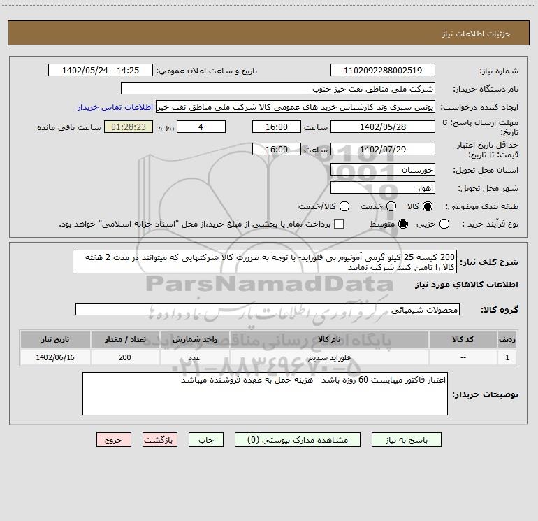 نام دستگاه خریدار:شرکت ملی مناطق نفت خیز جنوب