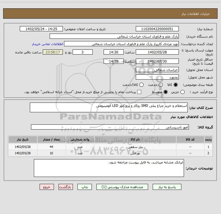 نام دستگاه خریدار:پارک علم و فناوری استان خراسان شمالی