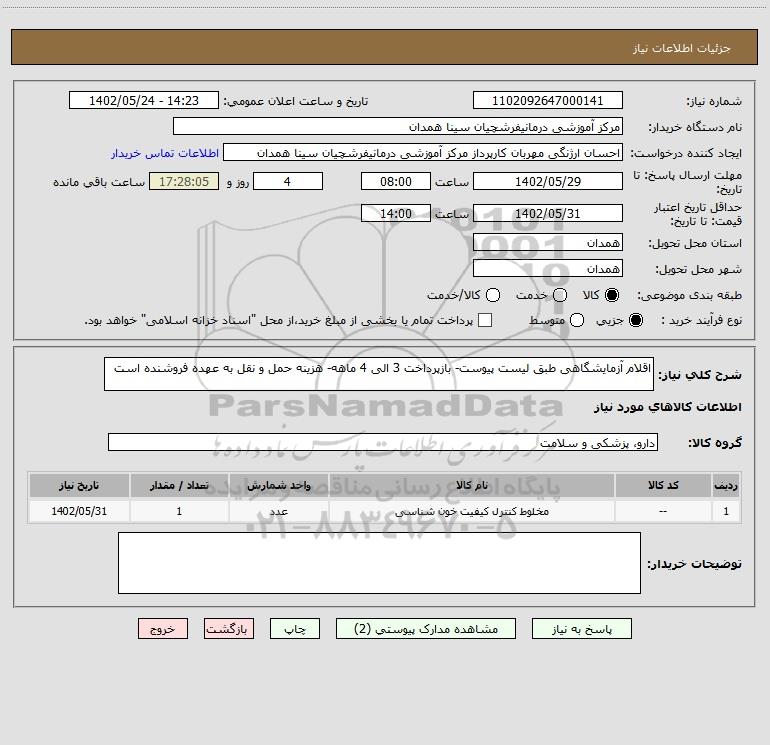 نام دستگاه خریدار:مرکز آموزشی درمانیفرشچیان سینا همدان