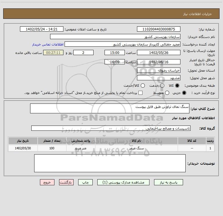 شرح کلی نیاز: سنگ نمای تراورتن طبق فایل پیوست