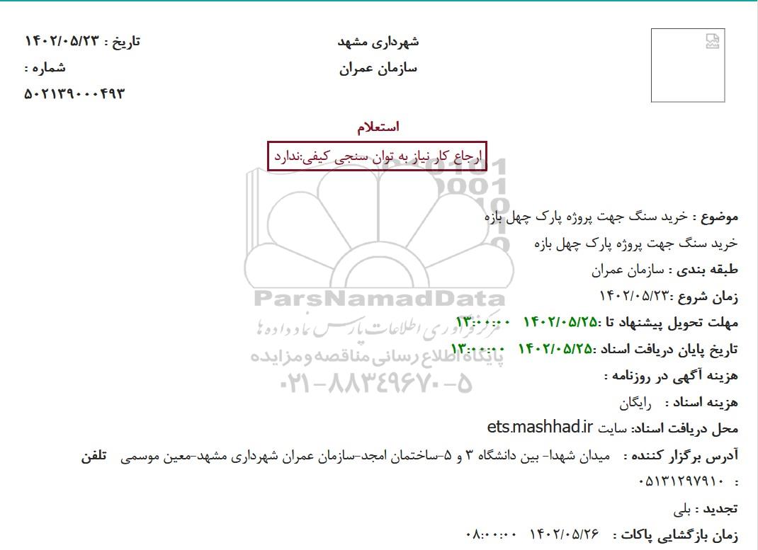 استعلام خرید سنگ جهت پروژه پارک چهل بازه, استعلام خرید سنگ جهت پروژه پارک چهل بازه