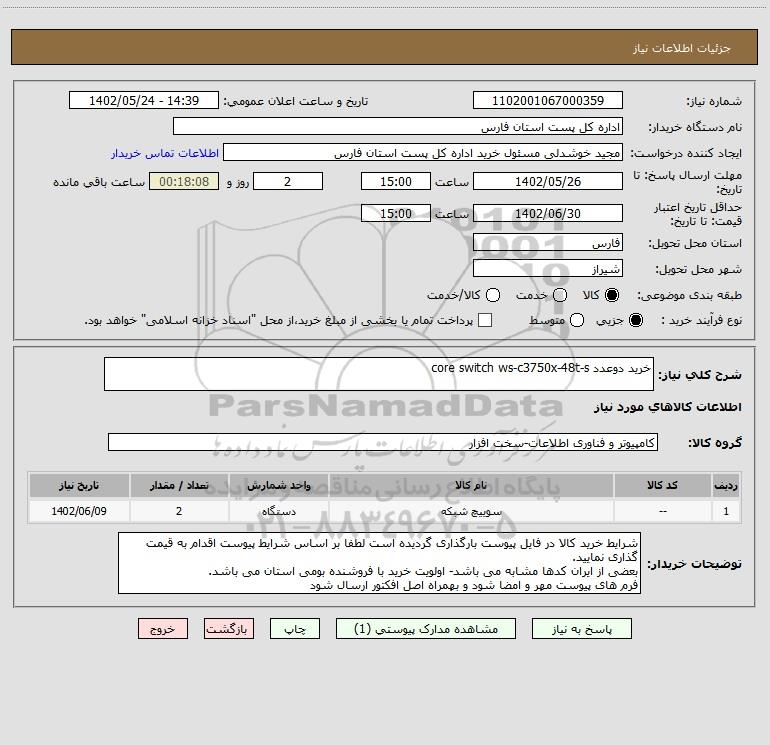 شرح کلی نیاز: خرید دوعدد core switch ws-c3750x-48t-s