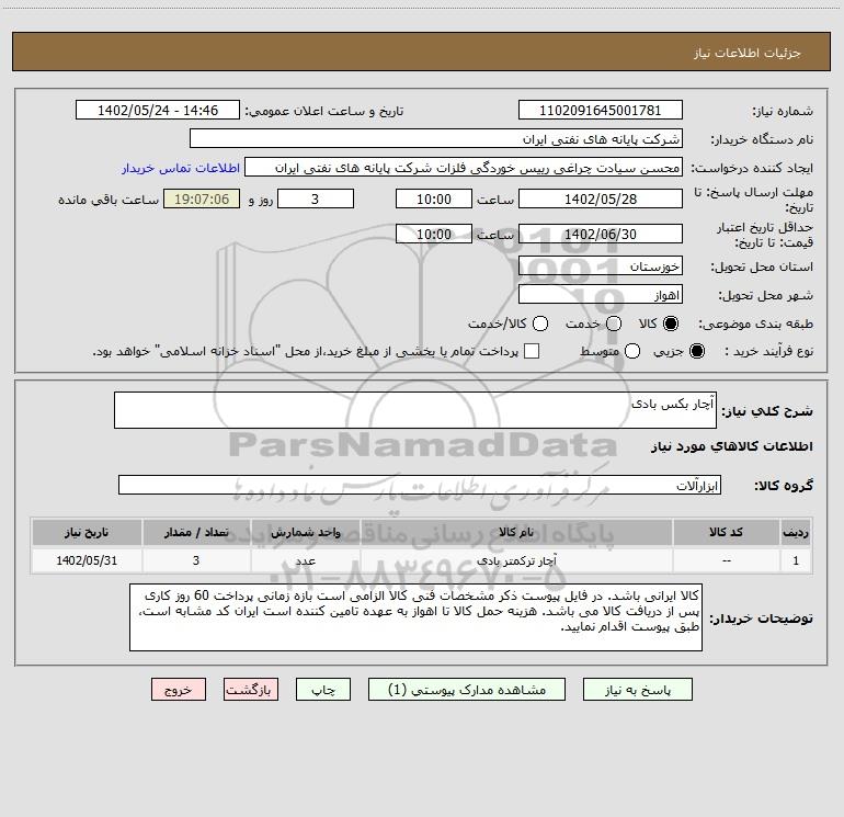 | 1 | -- | آچار ترکمتر بادی | عدد | 3 | 1402/05/31 |
