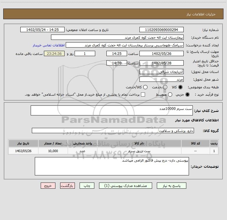 | 1 | -- | ست تزریق سرم | عدد | 10,000 | 1402/05/26 |