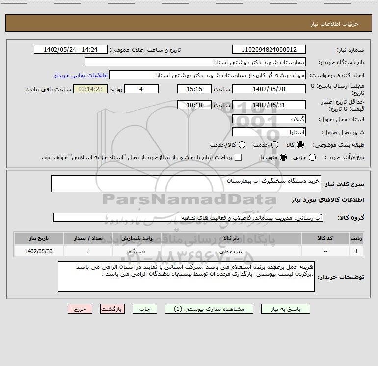 استعلام خرید دستگاه سختگیری اب بیمارستان, استعلام خرید دستگاه سختگیری اب بیمارستان