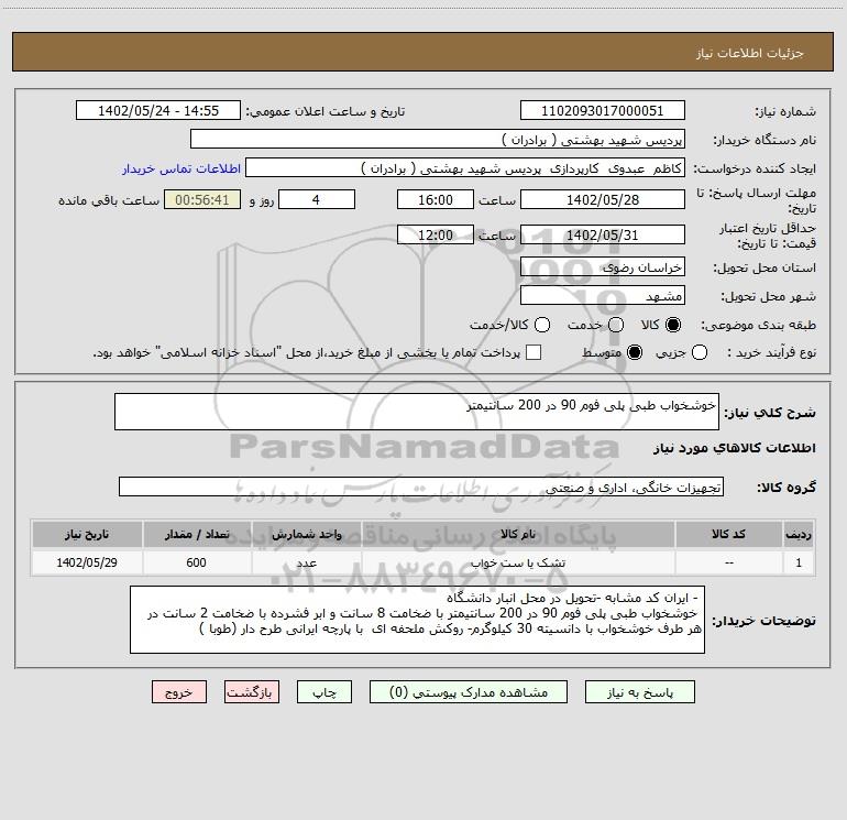 شرح کلی نیاز: خوشخواب طبی پلی فوم 90 در 200 سانتیمتر