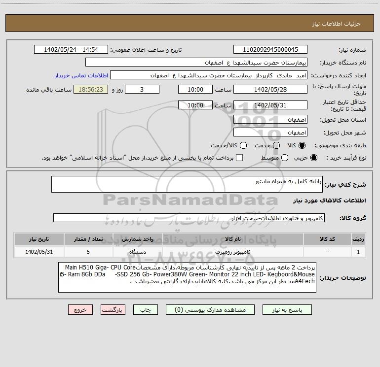 نام دستگاه خریدار:بیمارستان حضرت سیدالشهدا ع اصفهان
