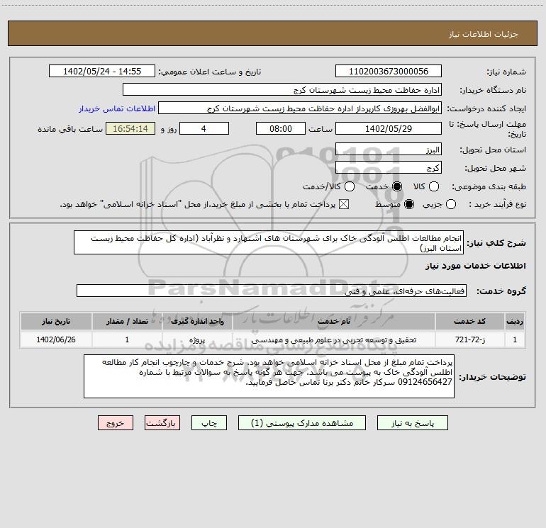 نام دستگاه خریدار:اداره حفاظت محیط زیست شهرستان کرج