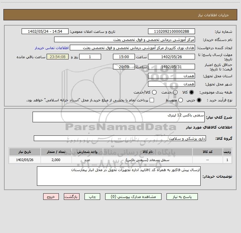 شرح کلی نیاز: سفتی باکس 12 لیتری