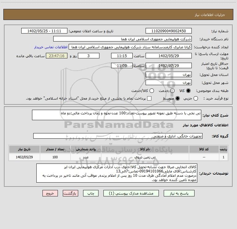 نام دستگاه خریدار:شرکت هواپیمایی جمهوری اسلامی ایران هما