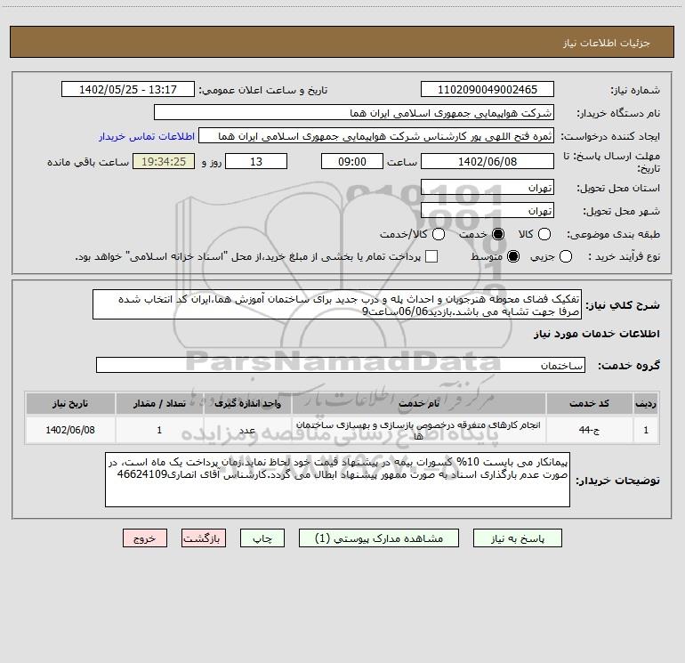 شرح کلی نیاز: تفکیک فضای محوطه هنرجویان و احداث پله و درب جدید برای ساختمان آموزش هما،ایران کد انتخاب شده صرفا جهت تشابه می باشد.بازدید06/06ساعت9