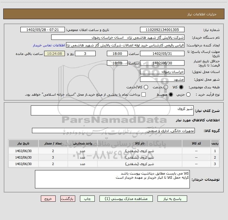 | 2 | -- | شیر کروی (بشقابی) | عدد | 3 | 1402/06/30 |