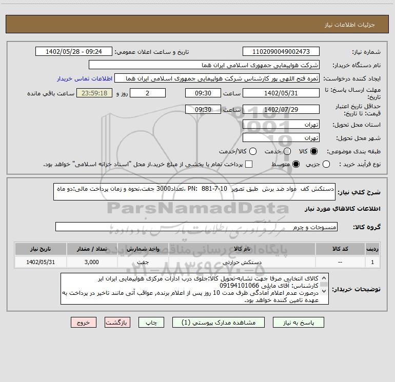 نام دستگاه خریدار:شرکت هواپیمایی جمهوری اسلامی ایران هما