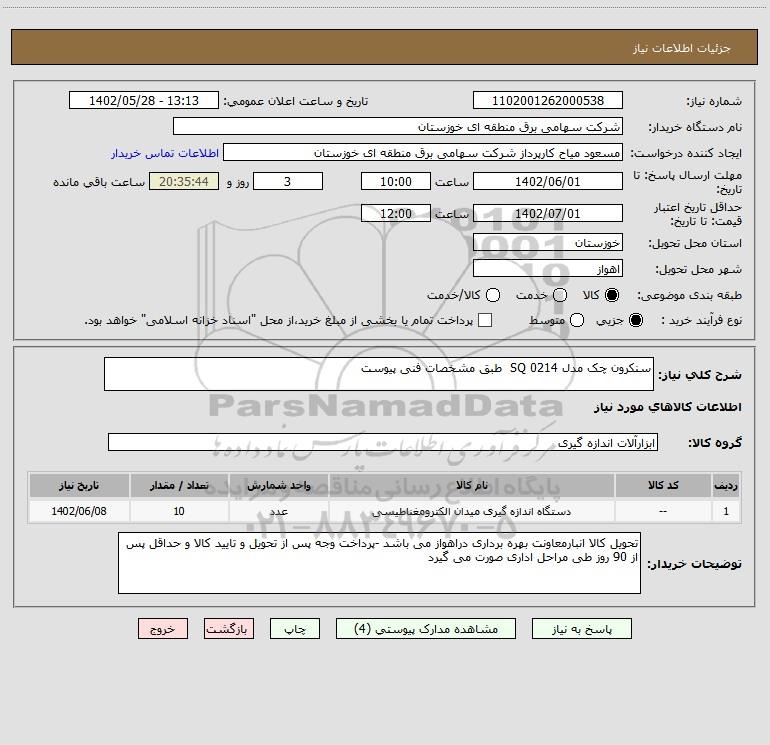 نام دستگاه خریدار:شرکت سهامی برق منطقه ای خوزستان