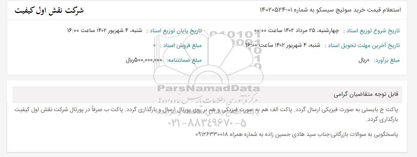 مبلغ ضمانت نامه: 500.000.000 ریال
