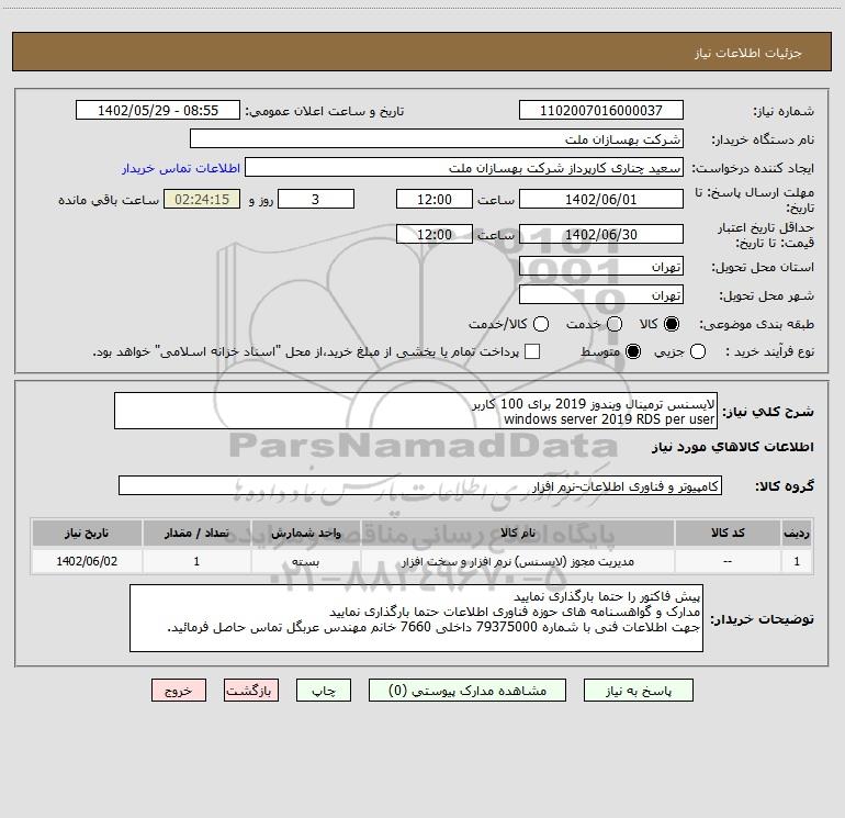 شرح کلی نیاز: لایسنس ترمینال ویندوز 2019 برای 100 کاربر