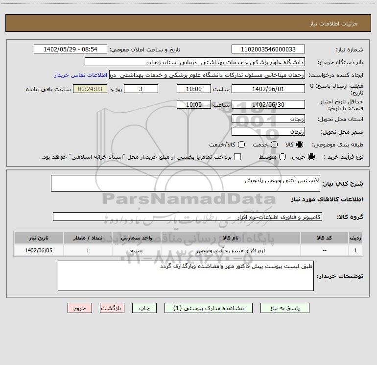 شرح کلی نیاز: لایسنس آنتنی ویروس پادویش