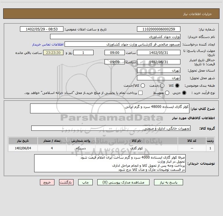 شرح کلی نیاز: کولر گازی ایستاده 48000 سرد و گرم ایرانی