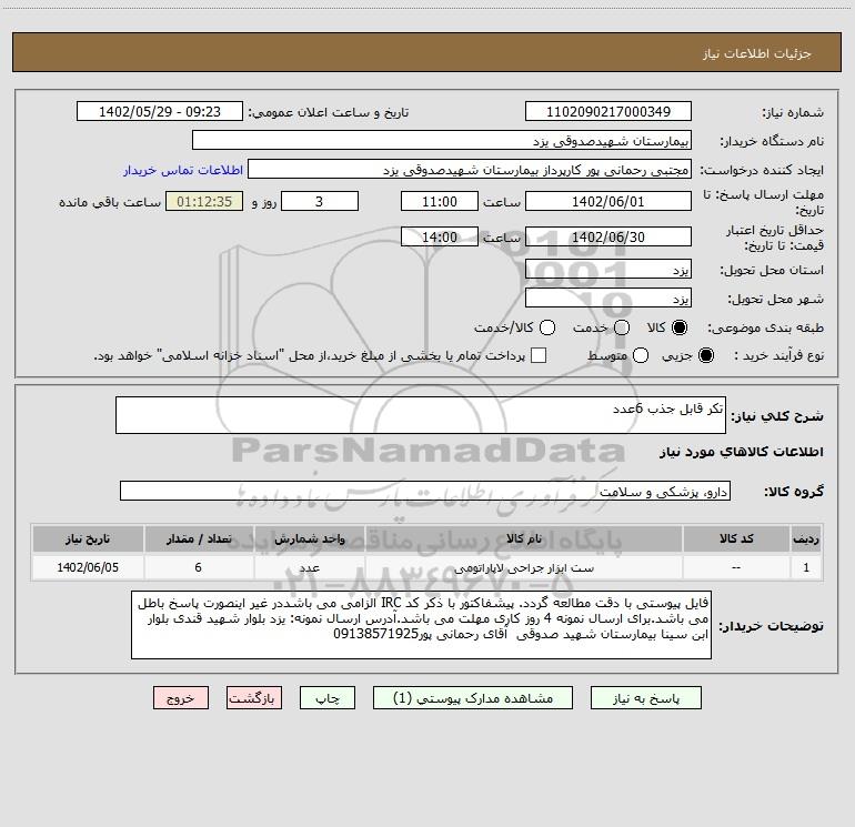 شرح کلی نیاز: تکر قابل جذب 6عدد