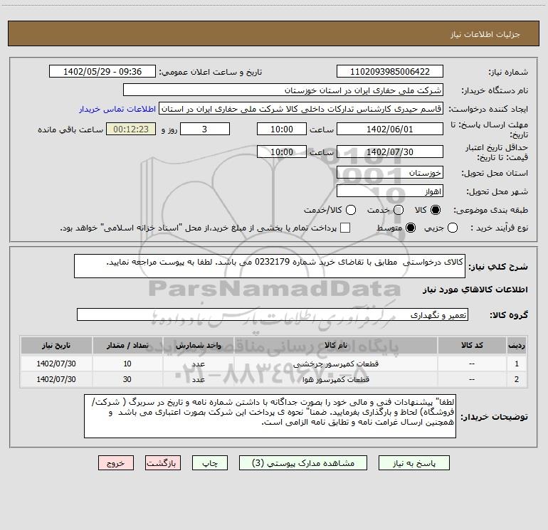 شرح کلی نیاز: کالای درخواستی مطابق با تقاضای خرید شماره 0232179 می باشد. لطفا به پیوست مراجعه نمایید.