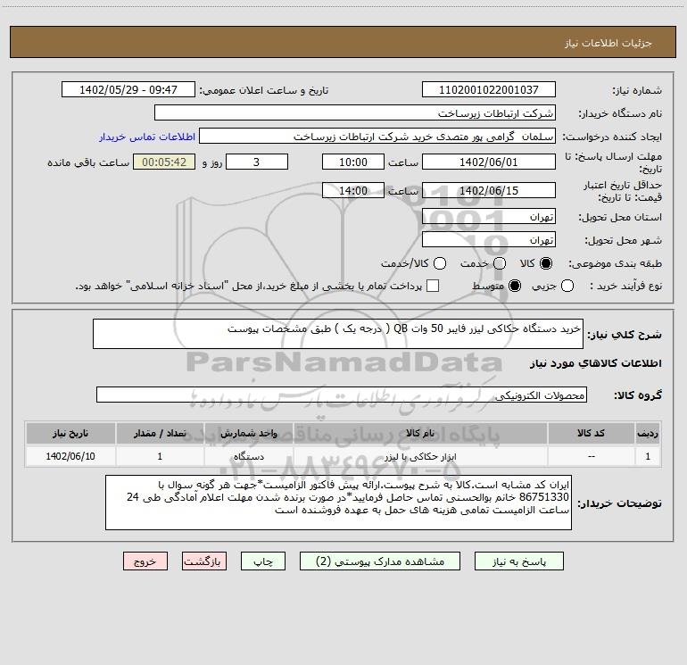 نام دستگاه خریدار:شرکت ارتباطات زیرساخت