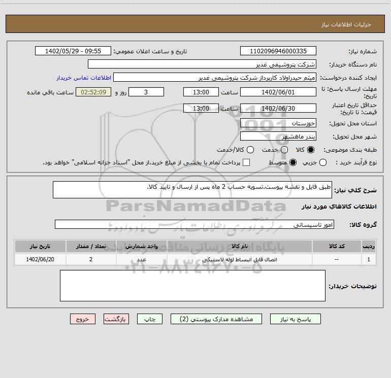 شرح کلی نیاز: طبق فایل و نقشه پیوست.تسویه حساب 2 ماه پس از ارسال و تایید کالا.