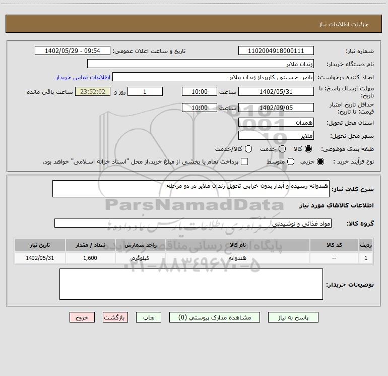 شرح کلی نیاز: هندوانه رسیده و آبدار بدون خرابی تحویل زندان ملایر در دو مرحله
