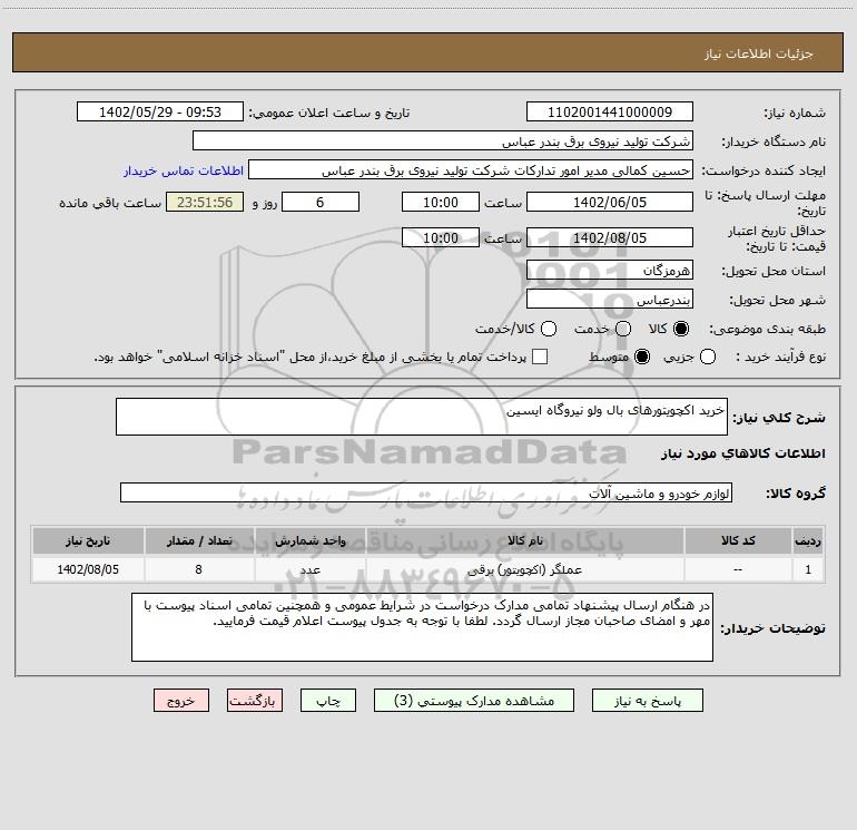 شرح کلی نیاز: خرید اکچویتورهای بال ولو نیروگاه ایسین