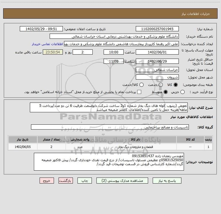 نام دستگاه خریدار:دانشگاه علوم پزشکی و خدمات بهداشتی درمانی استان خراسان شمالی