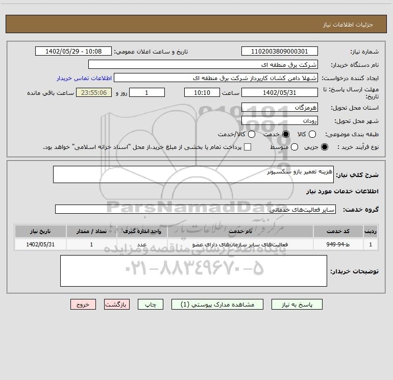 شرح کلی نیاز: هزینه تعمیر بازو سکسیونر